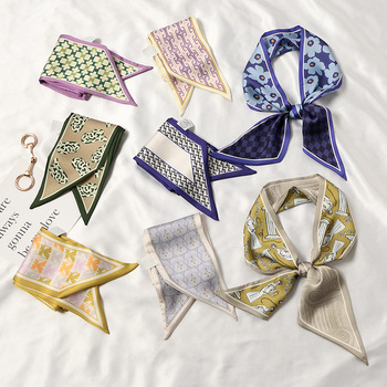 Logotipo impresso personalizado Lenços estreitos Borda Sarja Cachecol Designer De Seda Bolsas Fita Cabelo Cachecóis